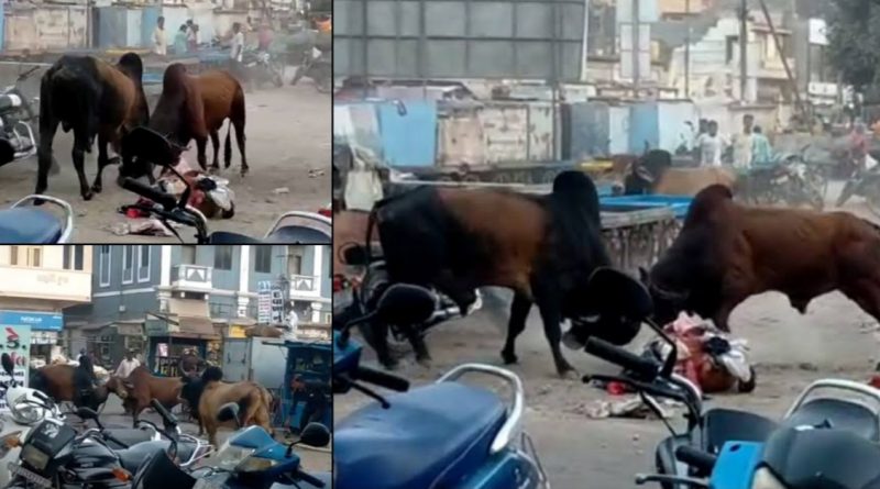 પોરબંદરમા ભર બજારે થયું ભંયકર આખલા યુધ્ધ! જો કોઈ વચ્ચે આવ્યુ હોત તો જીવતું ના બચેત…