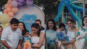 અગાઉ, અમને આકાશ અંબાણીની પત્ની શ્લોકા મહેતાની તેમના પુત્ર પૃથ્વી સાથેની તસવીર મળી હતી. તસવીરમાં આપણે શ્લોકા અંબાણી તેના પુત્ર પૃથ્વી સાથે વિશાળ કેકની બાજુમાં જોઈ શકીએ છીએ. જ્યારે બિન્દાસ મમ્મી શ્લોકા સફેદ ટોપ અને ફ્લોરલ-પ્રિન્ટેડ સ્કર્ટમાં ખૂબસૂરત દેખાતી હતી, ત્યારે જન્મદિવસનો છોકરો વાદળી જમ્પર અને મેચિંગ પેન્ટમાં ખૂબ જ સુંદર લાગતો હતો. જો કે, તે અદભૂત એક્વા-થીમ આધારિત કેક હતી જેણે દરેકનું ધ્યાન ખેંચ્યું હતું.