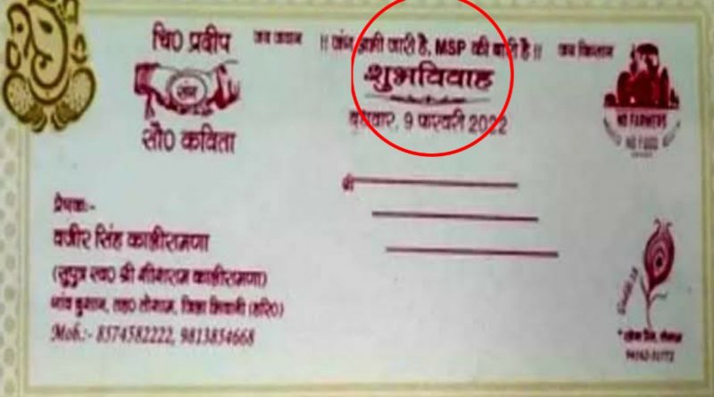 હરીયાણા ના ભવાની જીલ્લા ના રહેવાસી પ્રદીપ કાલીરામણા ના લગ્ન 9 ફેબ્રુઆરી 2022 ના રોજ લગ્ન છે અને આ માટે તેવો એ મહેમાનો ને આમંત્રણ આપવા માટે 1500 જેટલી કંકોત્રી છપાવી હતી કંકોત્રી ની ખાસ વાત એ હતી કે કંઓત્રી મા લખવામાં આવ્યુ હતુ કે ” જંગ અભી જારી હૈ એમએસપી કી બારી હૈ” આ ઉપરાંત ખેડુત નો ખાસ લોકો પણ છંપાવા મા આવ્યો છે અને નીચે લખાવતા મા આવ્યુ છે કે No farmers no foods.