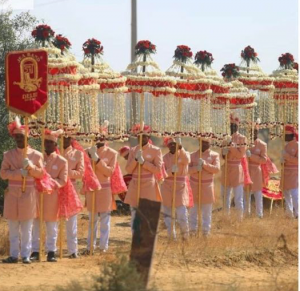 જે જગ્યાએ લગ્ન થવાના છે, ત્યાં દરેક રસમની તૈયારીઓ કરવામાં આવી છે. તેમજ મહેમાનો બેસીને તેમના ભોજનનો આનંદ માણી શકે છે તે માટે ડાયનિંગ ટેબલ ગોઠવામાં આવ્યાં છે.