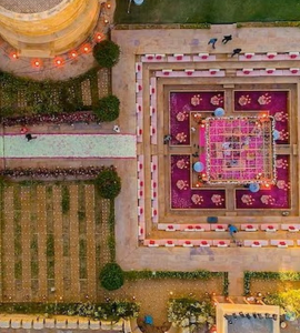 સૌથી આકર્ષક પાણીની વચ્ચોવચ બાંધવામાં આવેલ, ગુલાબ અને અન્ય ઘણા ફૂલોથી ઢંકાયેલો, સ્વપ્ન જેવો મંડપ જેવો દેખાય છે . આ મંડપ સુધી પહોંચવાના 4 રસ્તા છે. મંડપ પણ આંશિક રીતે ઢંકાયેલો છે જેથી બંનેને ગરમ સૂર્ય અથવા અન્ય હવામાન પરિસ્થિતિઓથી બચાવવામાં આવે.
