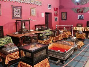પહેલા માળના એક ભાગમાં એક સંગ્રહાલય પણ છે, જેમાં દરવાજા ઉપર લાકડા અને પત્થરથી બનેલા બારસાખ રાખવામાં આવ્યા છે. આ સંગ્રહાલયના પ્રદર્શનોમાં મહારાજા દ્વારા મોટી સંખ્યામાં જમા કરવામાં આવેલ વસ્તુઓ રાખવામાં આવી છે જેમ કે રમકડાની ગાડી,ચિત્રો, પુસ્તકોની લાઇબ્રેરી, ટ્રોફીઓ વગેરે. સુશોભિત બાલ્કની ગોંડલ નગરના મનોહર દ્રશ્ય બતાવે છે. મહેલની ડાબી બાજુના ખંડમાં વાસણોનું પ્રદર્શન અને વિશાળ વજનકાંટાની જોડી છે.