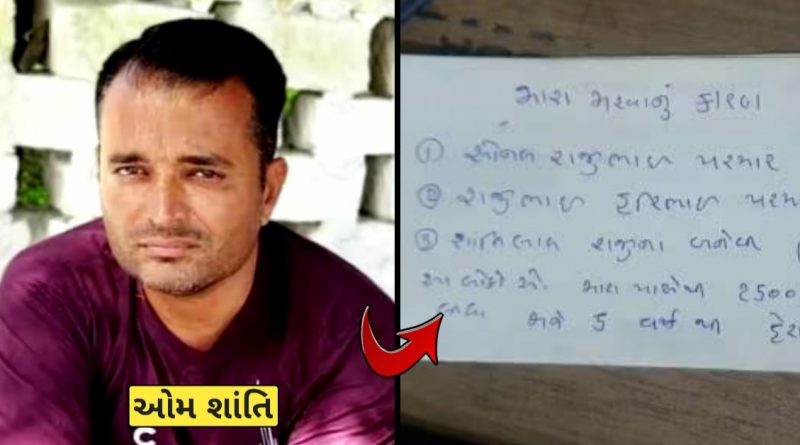 આપઘાતના સ્થળ પર મૃતકના ભાઈને રૂમની સેટી પર ચેક બુક પાછળના સુસાઈડ નોટ મળી આવી હતી. જેમાં લખ્યું હતું કે, મારા મરવાનું કારણ સોનલ રાજુભાઇ પરમાર, રાજુભાઇ હરિભાઇ પરમાર, શાંતિલાલ રાજુના બનેવી છે. આ લોકોએ મારા પાસેથી 25 લાખ પડાવી લીધા છે. આ મામલે મૃતકના ભાઈએ પોલીસે ફરિયાદ કરી હતી. જેના આધારે પોલીસે આરોપીઓની ધરપકડ કરવા તજવીજ હાથ ધરી છે.