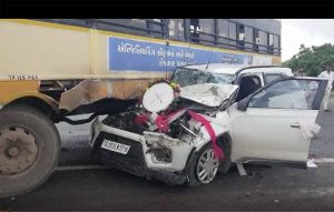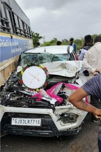 લગ્ન મંડપ પહોંચે એ પહેલા જ વરરાજા ની કાર ને અકસ્માત નડયો ! રાજકોટ – જામનગર હાઈવે…