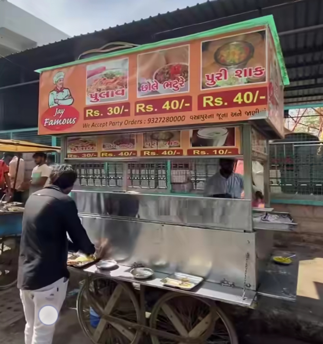 સરનામું : JAY FAMOUS, પુરી શાક અને પુલાવ, વસ્ત્રાપુર, અમદાવાદ